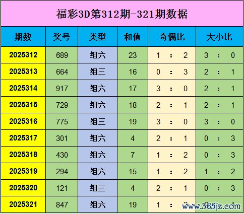 王林福彩3D奖号322期推选: